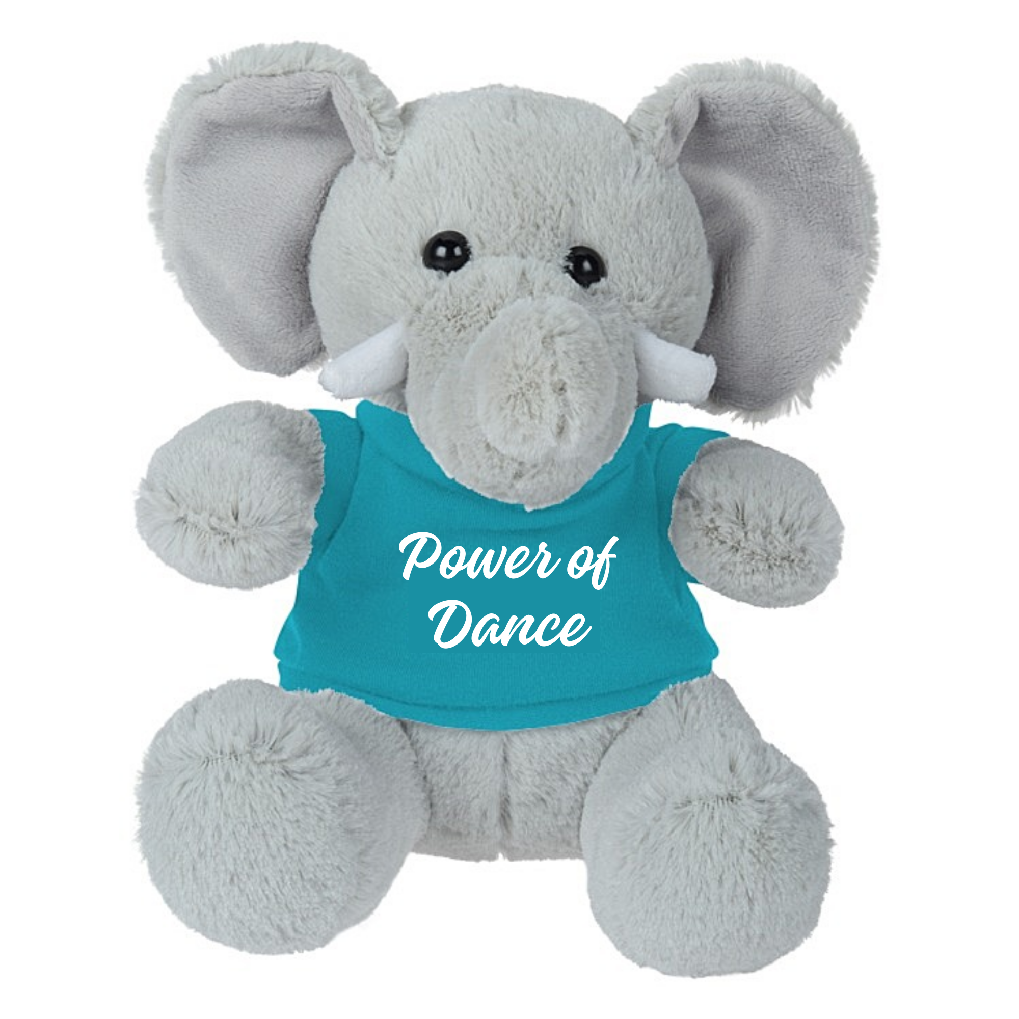 Encore the Elephant sits approximately 8 1/2″ tall and sports studio pride on a teal tee.  Perfect for your youngest dancers all the way up to those kiddos heading to college.  Limited number available!